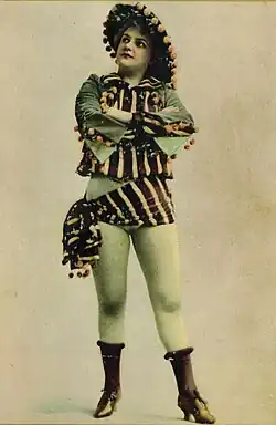 In February 1889, she appeared for the first time in New York, at Niblo's Garden. Her operetta roles brought her to the attention of Heinrich Conried, who had her play Yvonne, the soubrette part in The King's Fool, singing the song "Fair Columbia".[5] Conried also provided Fox with the only acting lessons she received.[6] When the newly formed DeWolf Opera Company was seeking a supporting cast, George W. Lederer of the New York Casino Theatre suggested Fox.[6] In May 1890, Hopper opened in Gustave Kerker's Castles in the Air, with Fox playing Blanche. Her first big success occurred in 1891 when she played Prince Mataya together with Hopper in his production of Wang, singing "Another Fellow".[1][5] The show was so popular that Fox and Hopper continued to play in it through 1892. In 1893, Fox re-teamed with Hopper in Panjandrum, followed by The Lady or the Tiger in 1894.