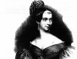 When Felix Mendelssohn visited Munich in 1830, he considered marriage with Von Schauroth. It was at her behest that he revised his Rondo capriccioso, Op. 14, which he completed in June of that year.[2] He later wrote to his sister Fanny that she had composed a passage of his Piano Concerto in G minor "that makes a startling effect." However, he never revealed what passage she had written.[3] The concerto premiered in 1831 and Mendelssohn dedicated the work to her.