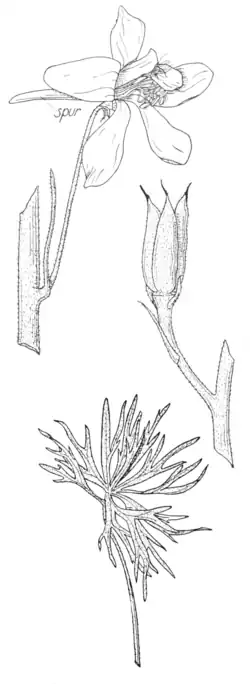 - ^ a b c POWO (2023). "Delphinium geyeri Greene". Plants of the World Online. Royal Botanic Gardens, Kew. Retrieved 26 May 2023.