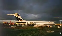 Delta Air Lines Flight 554 was a scheduled Delta Air Lines domestic passenger flight between Atlanta and New York City's LaGuardia Airport. On October 19, 1996, the McDonnell Douglas MD-88 aircraft struck the approach light structure and the vertical edge of the concrete landing deck during its approach to land on Runway 13 at LaGuardia Airport. The aircraft proceeded to skid 2,700 feet down the runway before coming to a rest. Of the 58 passengers and 5 crew members aboard, 5 received minor injuries.[1][2][3] The aircraft was substantially damaged and repaired for $14 million.[1][4]