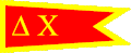 Delta Chi's badge is a monogram of the Greek letters ΔΧ.[2] The Δ can either be in black enamel or set with stones.[2] The pledge pin is shaped like a Δ in red and gold buff, with a gold Chi in the lower background.[2]