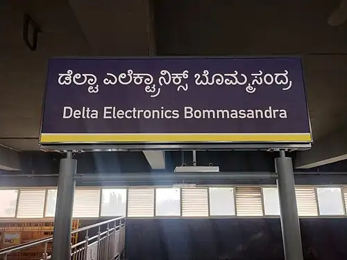 - ^ "Bengaluru's Bommasandra Metro Station to be named after Delta India | industry news updates - India's best industrial news video channel". www.mojo4industry.com/. 6 December 2024. Retrieved 10 December 2024.
