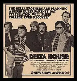 Delta House is an American sitcom that was adapted from the 1978 film National Lampoon's Animal House. The series aired from January 18 to April 21, 1979 on ABC.