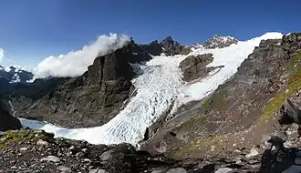 Deming Glacier is located on Mount Baker in the North Cascades of the U.S. state of Washington.[2] Between 1850 and 1950, Deming Glacier retreated 7,217 ft (2,200 m). During a cooler and wetter period from 1950 to 1979, the glacier advanced 2,060 ft (630 m) but between 1980 and 2006 retreated back 1,140 ft (350 m).[3] Situated on the southwest slopes of Mount Baker, Deming Glacier is bordered by the Easton Glacier to the east and the Black Buttes ridge to the west.