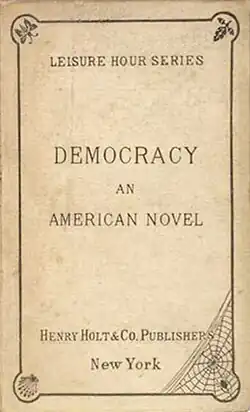 Democracy: An American Novel is a political novel written by Henry Brooks Adams and published anonymously in 1880. Only after the writer's death in 1918 did his publisher reveal Adams's authorship although, upon publication, the novel had immediately become popular. Contemporaneous conjecture placed the book under the joint authorship of Clarence King, John Hay and Henry Adams and their spouses who lived side by side on H street in Washington, D.C., and were collectively sometimes called "the Five of Hearts."