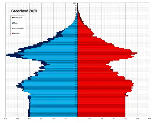 ![]() Population pyramid of Greenland in 2020 | |