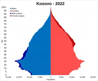 ![]() Population pyramid of Kosovo in 2022 | |