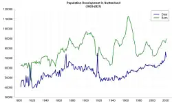 - ^ "Demographic balance of the permanent resident population, 1861–2019" (XLS) (official statistics). Neuchâtel: Swiss Federal Statistical Office (FSO), Swiss Confederation. 27 August 2020. su-e-01.02.04.05. Retrieved 2 August 2021.