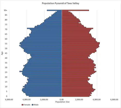 - ^ a b c d "Local indicators for Tees Valley". Office of National Statistics. 2025. Retrieved 15 May 2025.