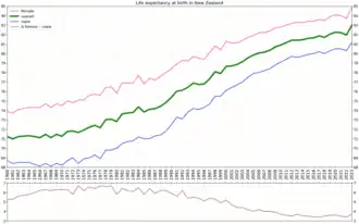- ^ "Growth in life expectancy slows | Stats NZ". www.stats.govt.nz. Retrieved 10 December 2022.