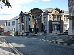 The county council initially decided to meet alternately at the County Hall in Denbigh and County Buildings, Wrexham, as the quarter sessions had done.[20][21] In 1891, the council decided to additionally meet in Ruthin,[22] and in 1900 the council added Colwyn Bay to list of places where it met.[23] It then held its regular meetings in rotation at Denbigh, Colwyn Bay, Ruthin and Wrexham until the abolition of the first incarnation of the county council in 1974.[24]