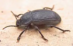 Dendarus is a genus of darkling beetles in the family Tenebrionidae. The genus is distributed from Morocco to Caucasus and exhibits a high level of diversity with 36 species, 27 of which are island endemics.[1][2] Analyses of the phylogenetic relationships of 23 species from Greece and Turkey revealed 13 distinct lineages with several para- and polyphyletic cases corresponding to three major phylogroups [south/south-east Aegean (D. foraminosus complex, D. rhodius, D. sporadicus, D. wettsteini); central to north Aegean, Turkey and mainland Greece (D. crenulatus, D. moesiacus group, D. sinuatus complex, D. stygius) and mainland Greece (D. messenius, D. paganettii)].[1]