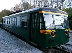 Was put into service in 1952 with the number 55414. After her career with the NMBS she was used by the Toeristische Trein Zolder. Afterwards she was put up as a monument at Maredsous station. Since 2016 the railcar is the property of SDP. |