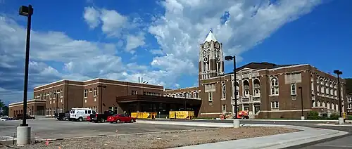 Duluth Denfeld High School, also known as Denfeld High School, is one of two high schools in Duluth, Minnesota along with Duluth East as of 2011 after the closure of Duluth Central and the previous closing of Morgan Park HS in 1982. Serving over 1000 students from grades nine to twelve, Denfeld High School has become a West Duluth landmark. The school is known for its architecture, including a historic auditorium and a 120-foot clock tower visible from Grand Avenue.