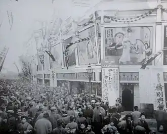 The Denkikan (電気館) was the first dedicated movie theater in Japan. Originally a hall built in Asakusa's Rokku theater district to present spectacles featuring electricity ("denki" in Japanese), it was converted into a movie theater in October 1903 by Yoshizawa Shōten, the most successful of the film companies at the time. Featuring benshi such as Saburo Somei,[1] it quickly became the symbol of the new phenomenon of the motion pictures and many cinemas around Japan were later created that borrowed the name "Denkikan."[2] It later became a Nikkatsu theater and then a Shochiku theater before finally closing in 1976. The vacant site was used as flea market until 1987 when a commercial and residential complex was constructed. A historically accurate model of the theater is currently on display at the Edo-Tokyo Museum in Tokyo. It is also cited in Kaizo Hayashi's film To Sleep so as to Dream.[3]