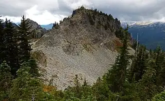 Denman Peak is a small 6,006 ft summit in the Tatoosh Range which is a sub-range of the Cascade Range.[1] It's located south of Mount Rainier within Mount Rainier National Park. Denman Peak is situated east of Lane Peak and west of Pinnacle Peak.