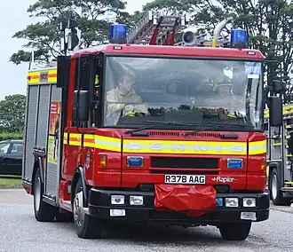 The Humberside Fire Brigade were a major customer for the Dennis Rapier in the United Kingdom, with the brigade standardising on the appliance throughout its production into the late 1990s.[10][11][12] Other operators of the Rapier in the United Kingdom included fire brigades in Merseyside, who took on a handful of pre-facelift examples, West Sussex, Kent,[13] Shropshire[14] and Nottinghamshire.