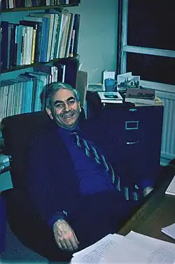 Dennis William Siahou Sciama, FRS (/ʃiˈæmə/; 18 November 1926 – 18 December 1999)[7][8] was an English physicist who, through his own work and that of his students, played a major role in developing British physics after the Second World War.[9][10] He was the PhD supervisor to many famous physicists and astrophysicists, including John D. Barrow, David Deutsch, George F. R. Ellis, Stephen Hawking, Adrian Melott and Martin Rees, among others; he is considered one of the fathers of modern cosmology.[11][12][13][14]