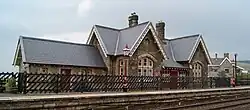 The station was designed by the Midland Railway's company architect John Holloway Sanders[2] and opened in 1877.[3] It was closed in May 1970, but was reopened by British Rail in 1986 following a campaign to maintain regular stopping services along the line.[4] Initial consideration had been given to siting a station for the valley at Dent Head, further to the south and adjacent to the road running over Gayle Moor towards Hawes and Ingleton; however, this was ruled out in favour of the current location, as it would have been nearly twice as far from Dent village.