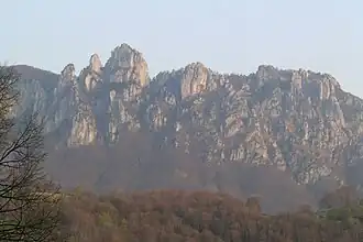 The Denti della Vecchia (1,491 m) (lit. "teeth of the old woman") are a mountain of the Lugano Prealps, located north of Lake Lugano on the border between Italy and Switzerland. They are composed of several summits of which the highest is named Sasso Grande.