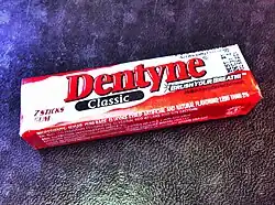 Dentyne (/ˌdɛnˈtiːn/) is a brand of chewing gum and breath mints available in several countries globally. It is owned by Perfetti Van Melle.[1]