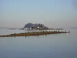The bay is framed to the west by Vancouver Island and to the south-east by Saysutshun (formerly Newcastle Island), a provincial marine park with a long history of mining, quarrying, herring salteries, and tourism. Jesse Island (9 acres or 3.6 hectares) and the smaller Brandon Islands are located near the northern shore of the bay. Both islands, though quite small, have varied histories; Brandon Island being notable for a history of Japanese fish canneries and salteries. In 1853 both islands were named after sailors on HMS Virago. Snake Island is a located just outside the mouth of the bay.