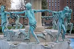 This fountain is the culmination of work by three noted figures in late-19th-century and early 20th-century public art. The original design was created by Karl Bitter, who was killed in a traffic accident in 1915 before the work could be realized. Following Bitter's overall design, Alexander Stirling Calder created the bronze figures and the fountain. Henry Bacon, a well-known landscape architect, designed the fountain's setting.