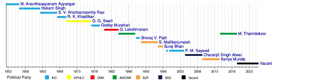 | 1 | M. Thambidurai | AIADMK | 4 years, 309 days | 9 years, 229 days | |