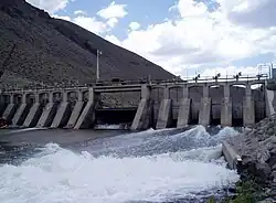 Derby Dam is a diversion dam built from 1903 to 1905 on the Truckee River, located about 20 miles (32 km) east of Reno in Storey and Washoe counties in Nevada, United States. It diverts water into the Truckee Canal[2] that would otherwise enter Pyramid Lake. The canal feeds Lake Lahontan reservoir in the Carson River watershed, where it is used for irrigation.[3]