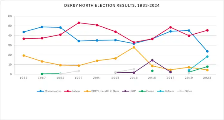 - ^ "Derby North – General election results 2024". BBC News. Retrieved 26 August 2024.