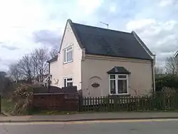 A crossing keeper's cottage, which survived the closure of the branch to become a private residence, matches the design of other minor stations along the route. The entrance to the booking hall and former platform door, now converted to be windows, can be seen and compared to contemporary station buildings.[10] However, contrary evidence suggests that the station may have been provided at the level crossing closer to the station, where there were later sidings on a section of line with a tight radius curve.[11]
