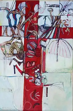 Despite the demands of his professional photographic career, Balmer continued to paint, travelling widely in Southern Europe to look at painting, architecture and sculpture. His work, initially influenced by Graham Sutherland,[2] soon developed a strongly colouristic, expressive quality, his largely landscape-inspired subjects of the 1960s and 1970s being treated in an increasingly semi-abstract manner. His influences drew on a wide range of sources – Pierre Bonnard, Peter Lanyon, John Hoyland and American abstract expressionists like Gorky and de Kooning among others. By the time he had his first solo show at the Arnolfini Gallery in 1968, he had however arrived at an intensely personal style of his own, one that began to attract notice from the London critics, Neville Wallis of The Observer predicting that "one day Balmer will set Bond Street on fire".[3]