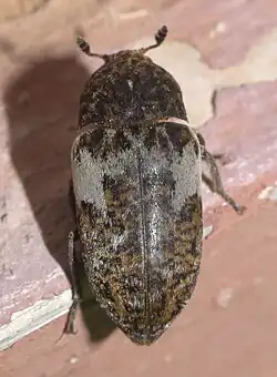 Dermestes marmoratus, the common carrion beetle, is a species of carpet beetle in the family Dermestidae. It is found in North America.[1][2][3]