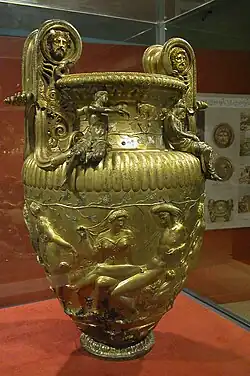 Derveni (Greek: Δερβένι) is a location in Mygdonia, Greece, between Efkarpia and Lagyna, approximately ten kilometers north-east of Thessaloniki.[1] At Derveni an archeological site is located where a necropolis was discovered, part of a cemetery of the ancient city of Lete. Valuable artifacts were uncovered at this site, including the Derveni papyrus and Derveni krater.[2]