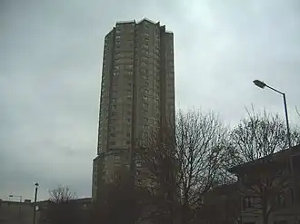 The tower had a very bold and striking appearance, unlike any other tower block or high rise building in the UK. It was of a Brutalist design[5] with many design similarities with Gateshead's "Get Carter car park" also a product of the Owen Luder Partnership. The tower housed two-bedroom flats up to the 10th floor and one-bedroom flats on floors 11 to 29. It featured in a 1970s advert for Tudor Crisps.[3]