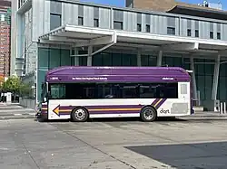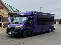 DART began a pilot electric bus program in October 2020, starting with seven Proterra Catalyst buses on route 60 (Ingersoll/University). The pilot program was funded by a grant from the Federal Transit Administration, with a local match from MidAmerican Energy.[7] Due to numerous issues with the buses, including suspension and weatherproofing issues, all seven buses were sidelined in fall 2022 shortly before their major manufacturer warranties expired. Despite attempts from Proterra technicians to address the issues, they were never fully resolved, and the buses were retired from the DART fleet in early 2025.[8][9]