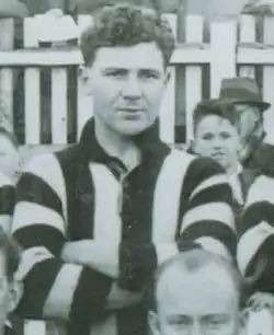 Recruited from East Melbourne C.Y.M.S.,[15] he played with the Collingwood Second XVIII in 1941, and made his senior debut against Essendon, at Victoria Park, on 30 May 1942.