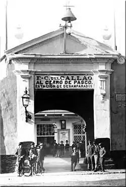 Desamparados station (Spanish: Estación de Desamparados) is a railway station in Lima, Peru. It is situated on the southern margin of the Rímac River, next to the Government Palace, at the intersection of Áncash and Carabaya streets. The station was named after the Church of Our Lady of the Forsaken, which stood next to the station until 1937. The project began in 1890 by the Peruvian Corporation and three years later the Lima–La Oroya route was inaugurated. The line became known as the Ferrocarril Central Andino.
