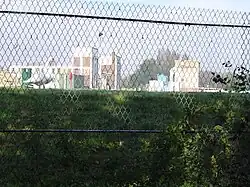 The island is almost uninhabited: mainly open space, playing fields and water treatment facilities. The island has access over two bridges from Walton Lane; the upper bridge connects a green-buffer part of Weybridge, the other into a similar area of Walton-on-Thames. The parish boundaries are medieval.[3] It covers 112 hectares (277 acres) of which 14 hectares (35 acres) is open space.[4] It is a site of nature conservation importance and is looked after by Elmbridge’s commons management team. The island contains the Walton Water Treatment Works,[5] owned by Affinity Water, and has some sporting facilities. Other parts of its land are owned by the EA, Surrey County and Elmbridge Borough councils. Pleasure boats operate from Walton, making a trip round the island.
