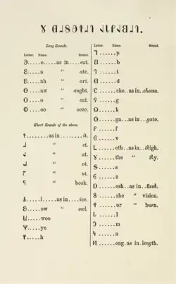 ^New, Douglas Allan (1985). History of the Deseret Alphabet and Other Attempts to Reform English Orthography. Ph.D. dissertation, Utah State University. p. 88.