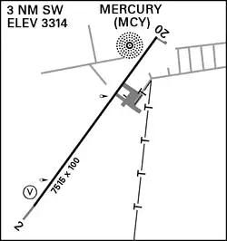 Desert Rock Airport is a private-use airport located three miles (5 km) southwest of the central business district of Mercury, in Nye County, Nevada, United States.[1] The airport is located on the Nevada Test Site and is owned by the United States Department of Energy.