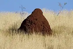 In certain geographical locations, such as the Simpson Desert, the desert egernia has been known to construct complex burrows with multiple exposed entrances.[17] The entrance of the burrow most often faces north or north-west, possibly as a temperature regulation strategy as the desert egernia does not often stray from its burrow and an entrance with these bearings may allow the entrance of the burrow to be exposed to an appropriate amount of sunlight.[16] Prior to winter, the entrances to the burrow are often sealed off to aid in thermoregulation through the hibernation period.[16][17] The desert egernia is known to frequently move between burrow sites.[4]