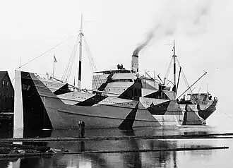 The Design 1065 ship (full name Emergency Fleet Corporation Design 1065) was a wooden-hulled cargo ship design approved for production by the United States Shipping Board's Emergency Fleet Corporation (EFT) in World War I.[2] A total of 7 ships were ordered and completed for the USSB from 1918 to 1919.[2] The ships were constructed at the Bellingham, Washington shipyard of Pacific American Fisheries.[1] The USSB originally wanted Pacific American Fisheries to follow its standard "Ferris-type" design (Design 1001) used by other shipyards but PAF was successful in convincing them to use their own design which they felt was more seaworthy.[3] The cost was $50,000 per ship.[3]