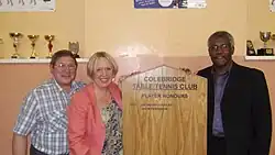 Desmond Douglas MBE (born 20 July 1955[1] in Jamaica) is a British table tennis player. He lived and was brought up in the area of Handsworth, Birmingham, West Midlands. He was an attacking, left-handed, player, notable for his scissor jump smash. He was famous for his use of close to the table blocks on the backhand side, mixing pace with powerful topspin from his forehand side.[2]