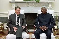 Desmond Hoyte meeting with Ronald Reagan in the Oval Office on 13 September 1988