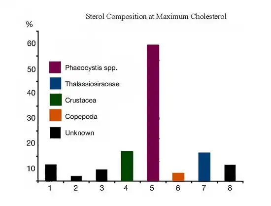 Diatoms and Silicoflagellates are classes of phytoplankton present in sedimentary material from the sediment water interface in the Peruvian Shelf region.[5] Mineralogical analysis of this sedimentary material suggested large volumes of phytoplankton. Researchers at the University of Bristol examined the sterol composition of these sedimentary rocks which have gone through oxygen depletion, leading to anoxic conditions. These conditions have enhanced the preservation of lipids present during the time of formation, around 1 year prior, and have limited the degradation of these compounds.