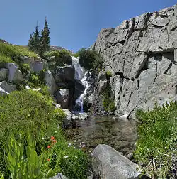 The Crystal Range is within the wilderness area, with Pyramid Peak as the highest point in the range and the wilderness at 9,985 feet (3,043 m)[5] in elevation. Among the many waterfalls within the wilderness is Horsetail Falls.
