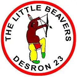 The mascot of Destroyer Squadron 23 was Little Beaver, a character made famous by Fred Harman's Red Ryder cartoon strip. This cartoon was very popular during the squadron's operations in World War II.