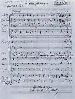 ![]() Hand-written transcription, from 1870 (long after Schubert's death), of the first page of the movement "Zum Eingang" (Introit) | |