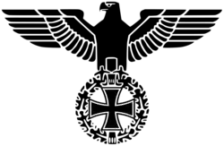 The beer uses a brown label, which media reports alleged to be a reference to the Sturmabteilung (SA, also known as Brownshirts).[3] The logo comprises a Reichsadler eagle and Iron Cross with the name of the beer below it in Gothic script.[4]